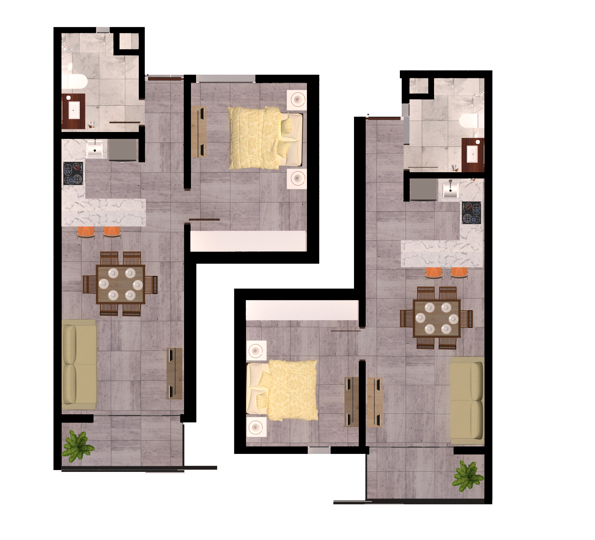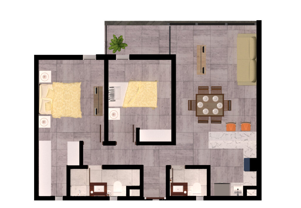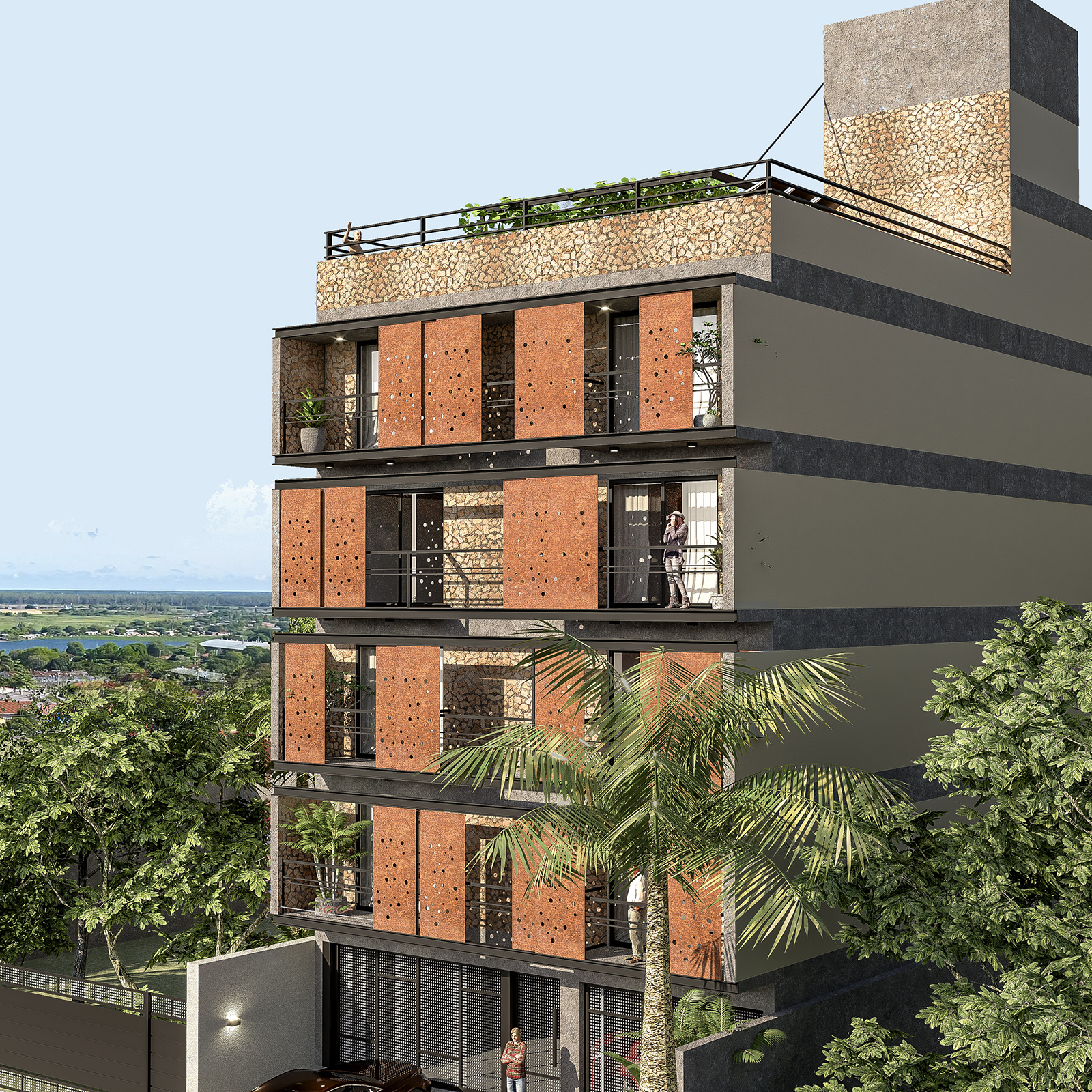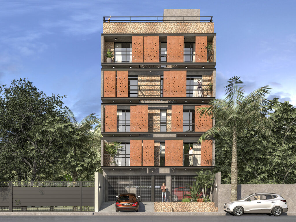 Con solo 12 departamentos distribuidos en 4 niveles, el proyecto propone una experiencia residencial privada, silenciosa y consciente. Aquí, la calidad no se expresa en exceso, sino en decisiones precisas: proporción, luz, ventilación y materia.