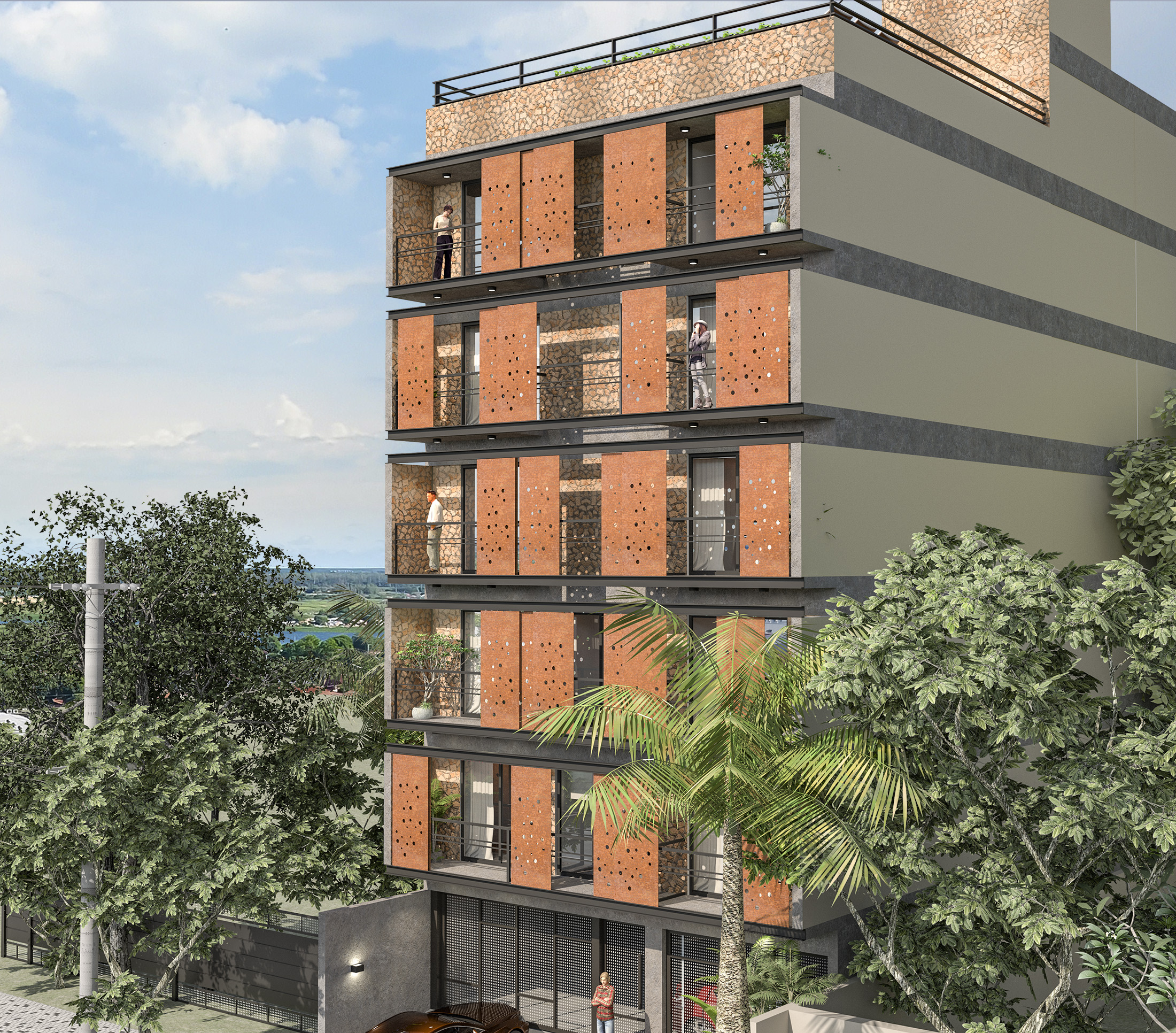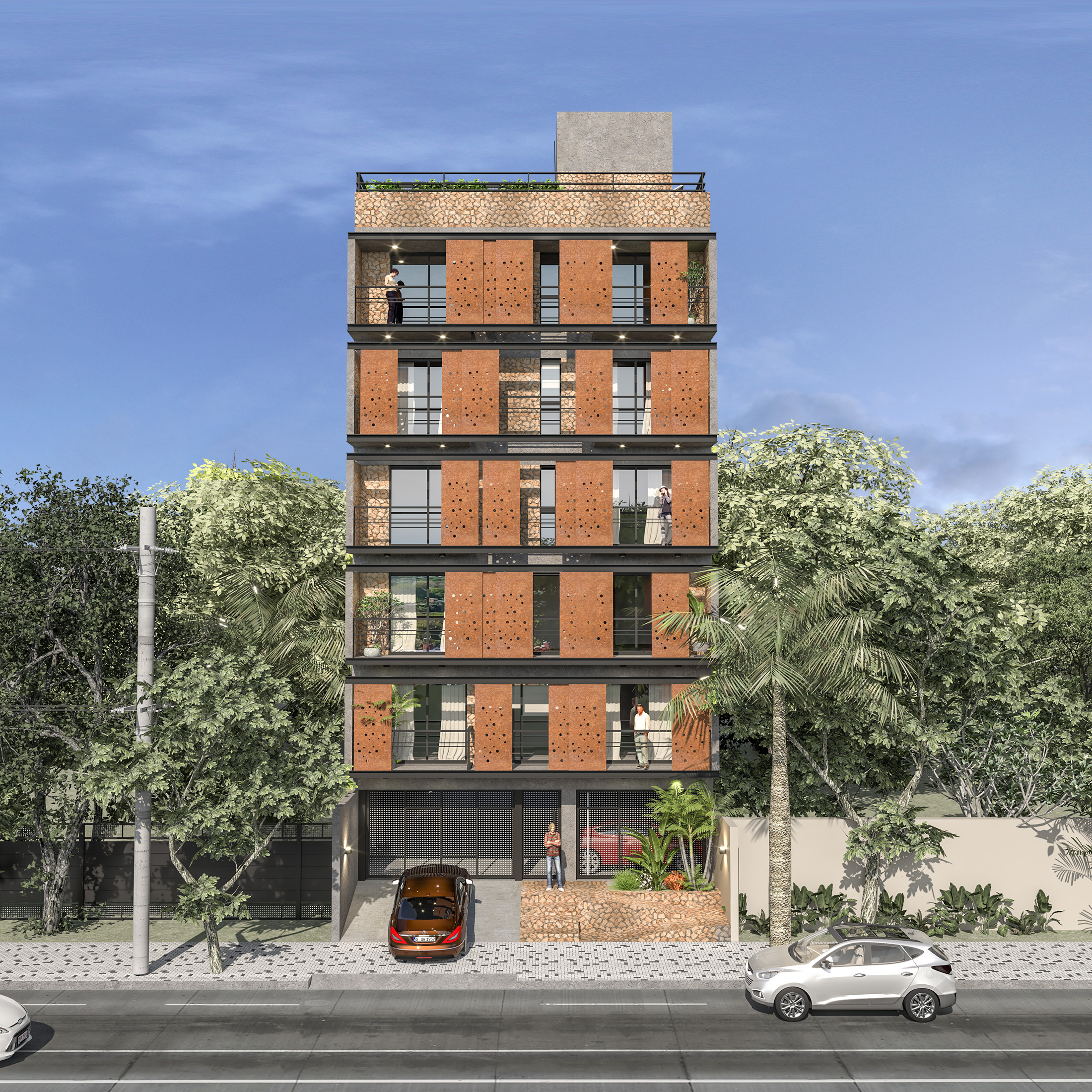 Con solo 16 departamentos distribuidos en 4 niveles, el proyecto propone una experiencia residencial privada, silenciosa y consciente. Aquí, la calidad no se expresa en exceso, sino en decisiones precisas: proporción, luz, ventilación y materia.