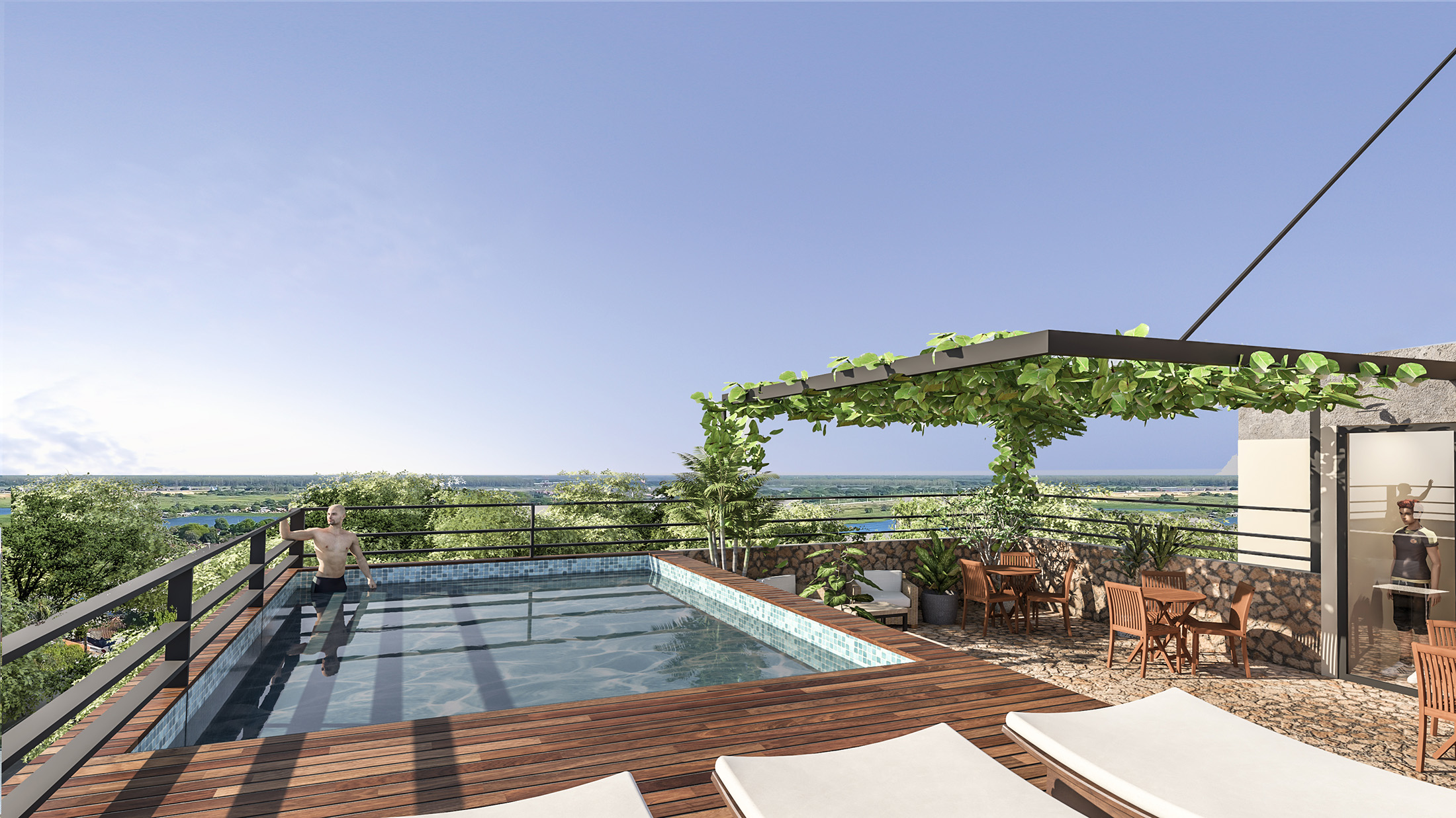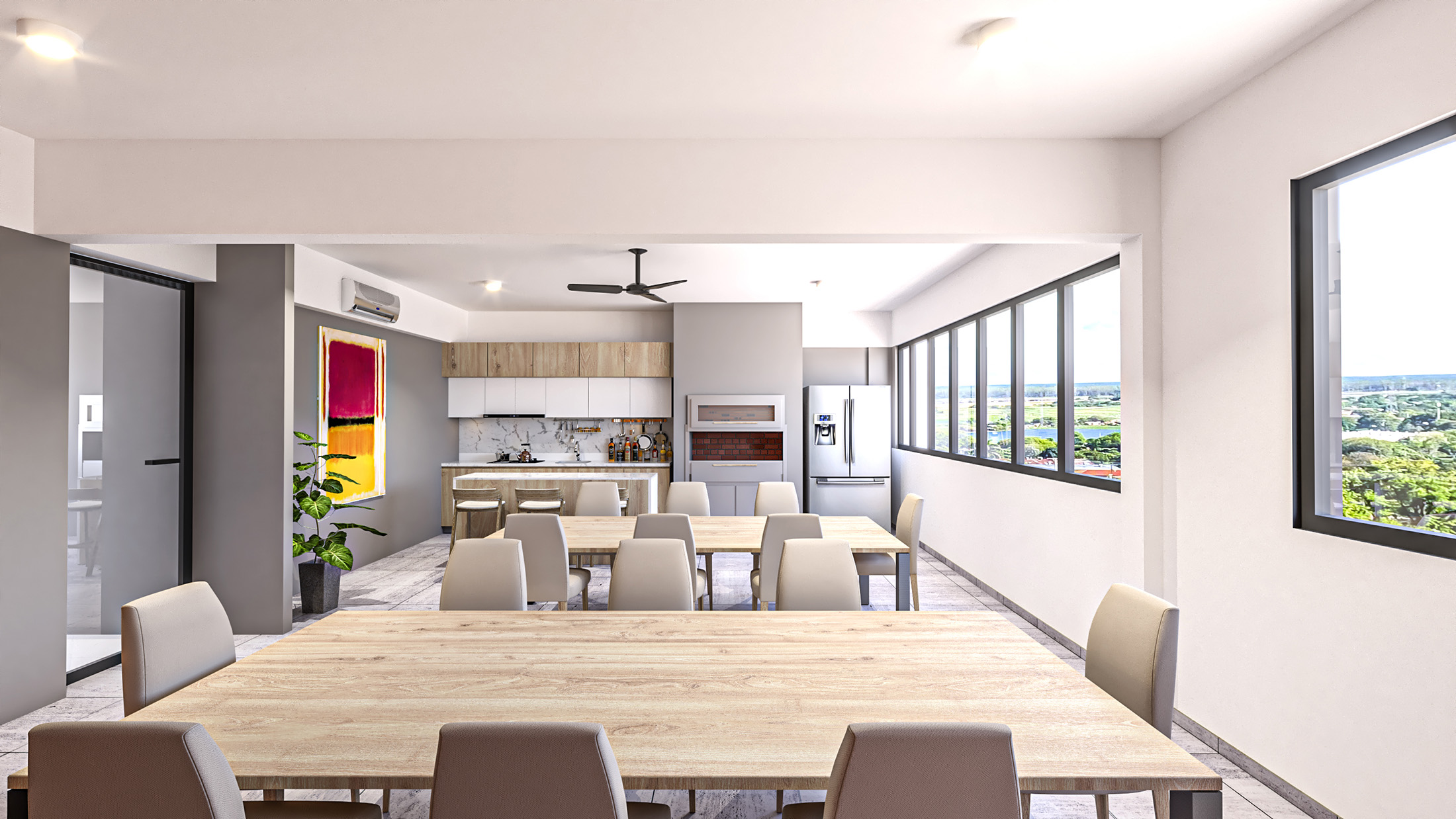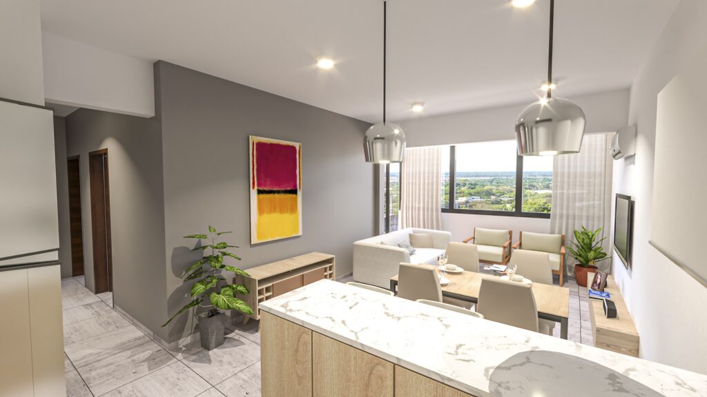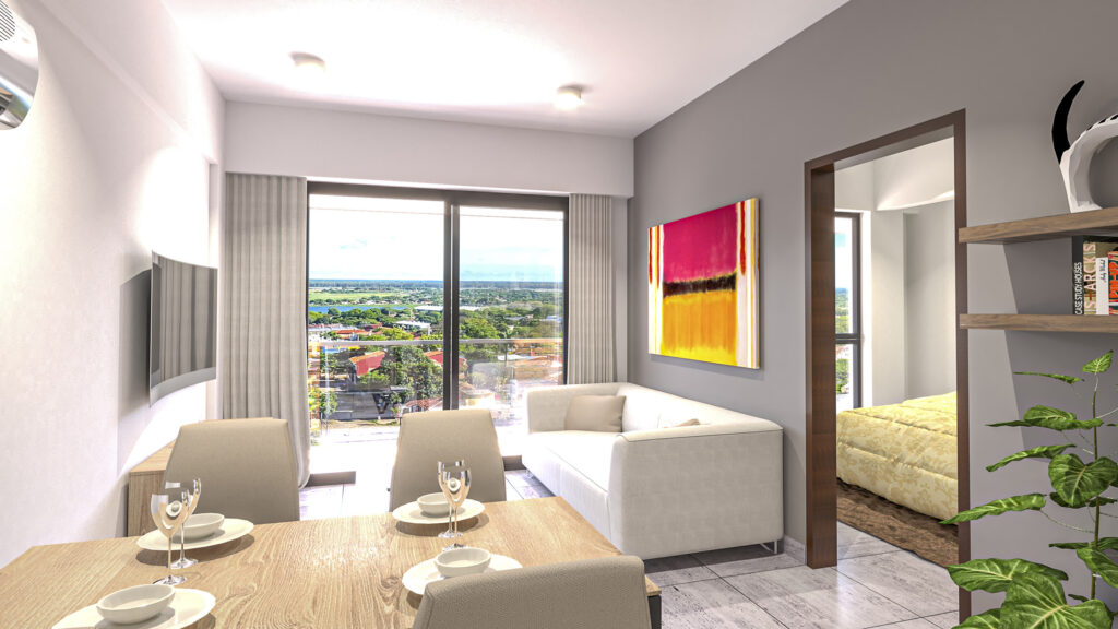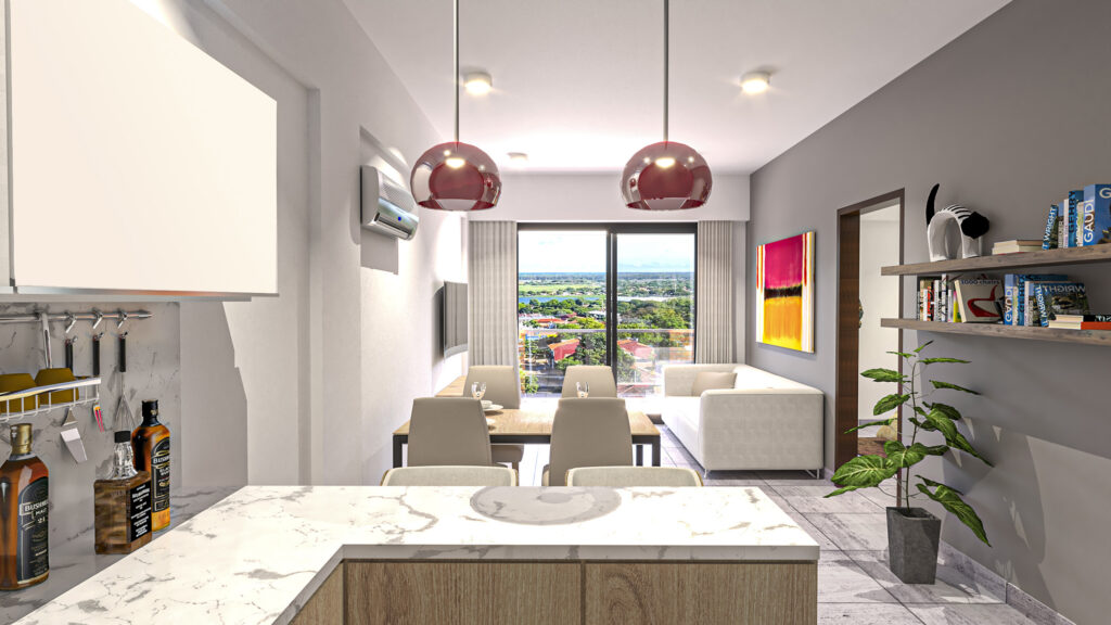 Cada unidad cuenta con balcón y vistas abiertas hacia la vegetación y la Bahía de Asunción, permitiendo que el paisaje y el cielo formen parte de la vida cotidiana. Los interiores priorizan la luz natural, la ventilación cruzada y las texturas auténticas, generando espacios que invitan a bajar el ritmo y habitar con calma.